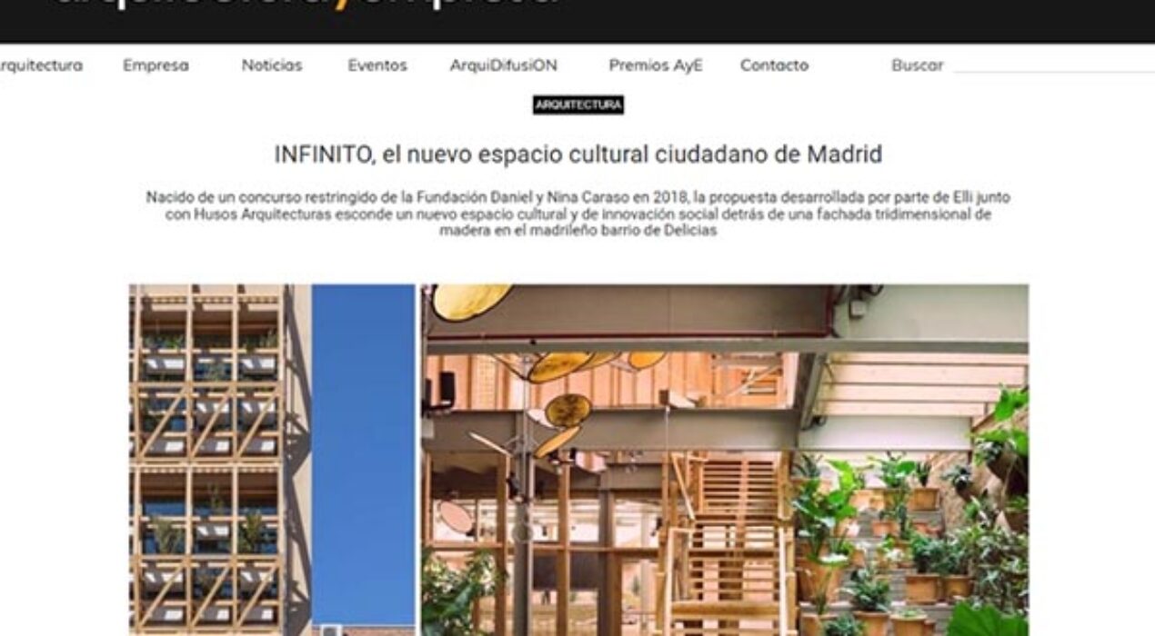 The building for Infinito Delicias featured in Arcquitecura y Empresa. + info: https://arquitecturayempresa.es/noticia/infinito-el-nuevo-espacio-cultural-ciudadano-de-madrid + + + El edificio para Infinito Delicias en Arquitectura y Empresa. + info: https://arquitecturayempresa.es/noticia/infinito-el-nuevo-espacio-cultural-ciudadano-de-madrid