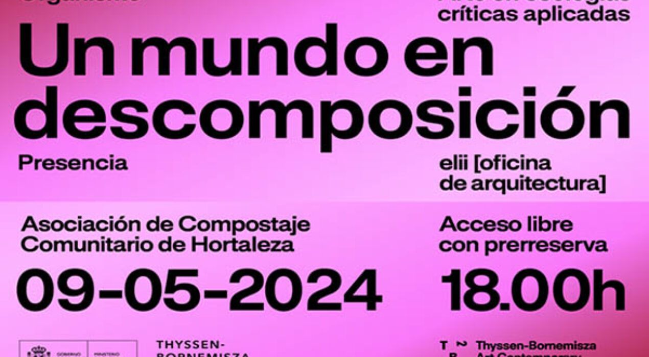 Within the framework of the program “Organism | Art in applied critical ecologies” of TBA21-Academy and the @museothyssen, next Thursday May 9 will take place the activity “A world in decomposition”. We will visit Hortaleza's Community Composting Association. Access is free, prior registration at organismo.info@tba21.org and until full capacity is reached. The aim of this activity is, with the help of the Hortaleza Community Composting Association, to ask ourselves several questions about our relationship with soils and their understanding as living beings with whom we live: how do our practices change when we assume that we do not live on the soil, but with the soil? + info: https://www.instagram.com/p/C6oZserCYgh/?img_index=1 + + + Dentro del marco del programa “Organismo | Arte en ecologías críticas aplicadas” de TBA21–Academy y el @museothyssen, el próximo jueves 9 de mayo tendrá lugar la actividad "Un mundo en descomposición". Visitaremos la Asociación de Compostaje Comunitario de Hortaleza. El acceso es libre, previo registro en organismo.info@tba21.org y hasta completar aforo. El objetivo de esta actividad es, de la mano de la Asociación de Compostaje Comunitario de Hortaleza, hacernos varias preguntas sobre nuestra relación con los suelos y su comprensión como seres vivos con los que convivimos: ¿cómo cambian nuestras prácticas cuando […]