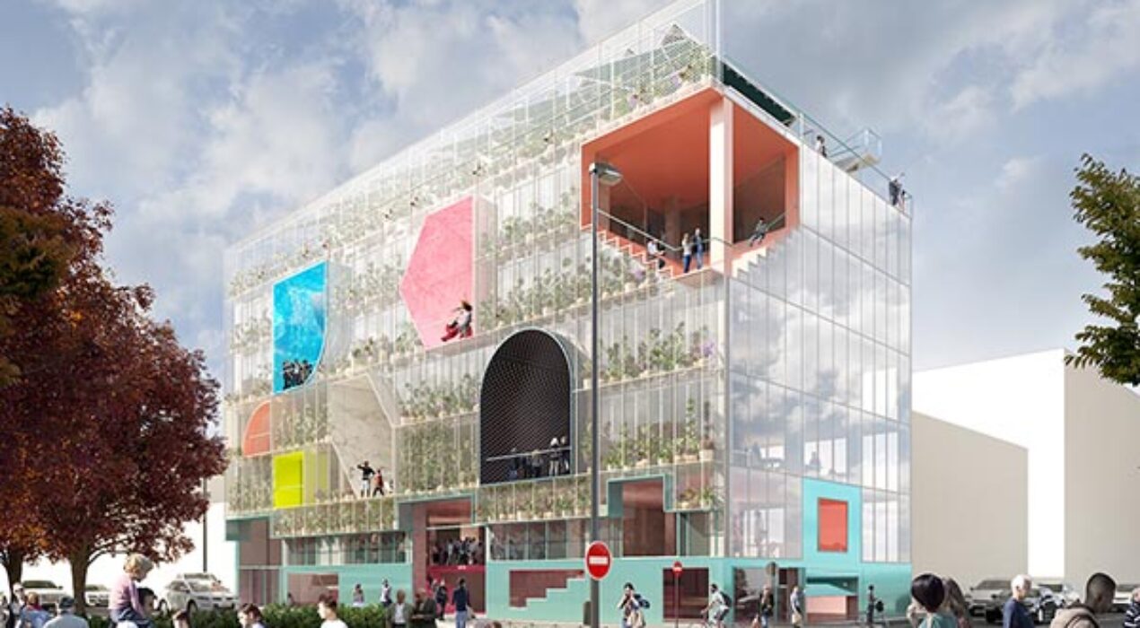 109 · casa diversa Diverse knowledge Space prototype, feasibility study for the new headquarters of the FDNC, Madrid ABSTRACT*This is one of three spatial prototypes in the interdisciplinary process for carrying out a feasibility study to build the new headquarters of the Daniel and Nina Carasso Foundation (DNCF) in Madrid. Rising behind the canopy of trees, an upright vegetated plane frames hosts a number of cut-out spaces suspended in floating equilibrium. At its base, several openings of varying sizes engage the street. A pergola of fabrics and photovoltaic panels covers the terrace and completes the volume above. The refurbishing strategy for this 1960s building begins by consolidating the preexisting reinforced concrete structure and opening up singular spaces of different geometries, sizes, materials, and colours. This array of “elevated courtyards” provides ventilation and natural light inside this nearly fifteen-metre-wide block closed off by a party wall in the back and on the south side. Looking out on the adjacent green area, the “exterior rooms” act as multipurpose and leisure areas. They also act as waypoints along an architectural promenade complementary to the basic flow of foot traffic in the building. Through this itinerary of indoor and outdoor atmospheres, hard and soft, […]