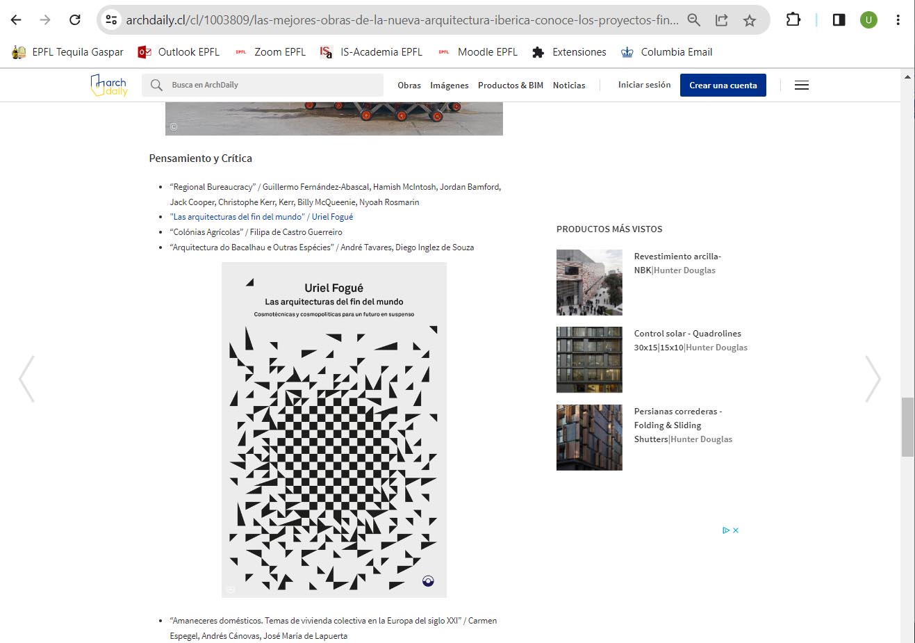 Archdaily fetures the finalists of the FAD awards. The book 'Las arquitecturas del fin del mundo' published by Puente editores is one of the finalists in the 'Thought and Criticism' section.