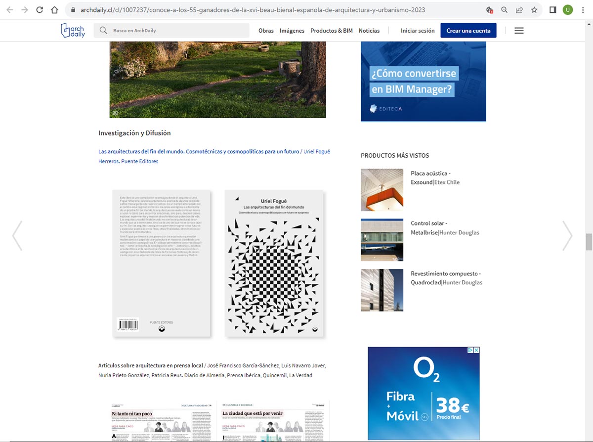 Archdaily publishes the winners of the BEAU, including the book "Las arquitecturas del fin del mundo" by Uriel Fogué.