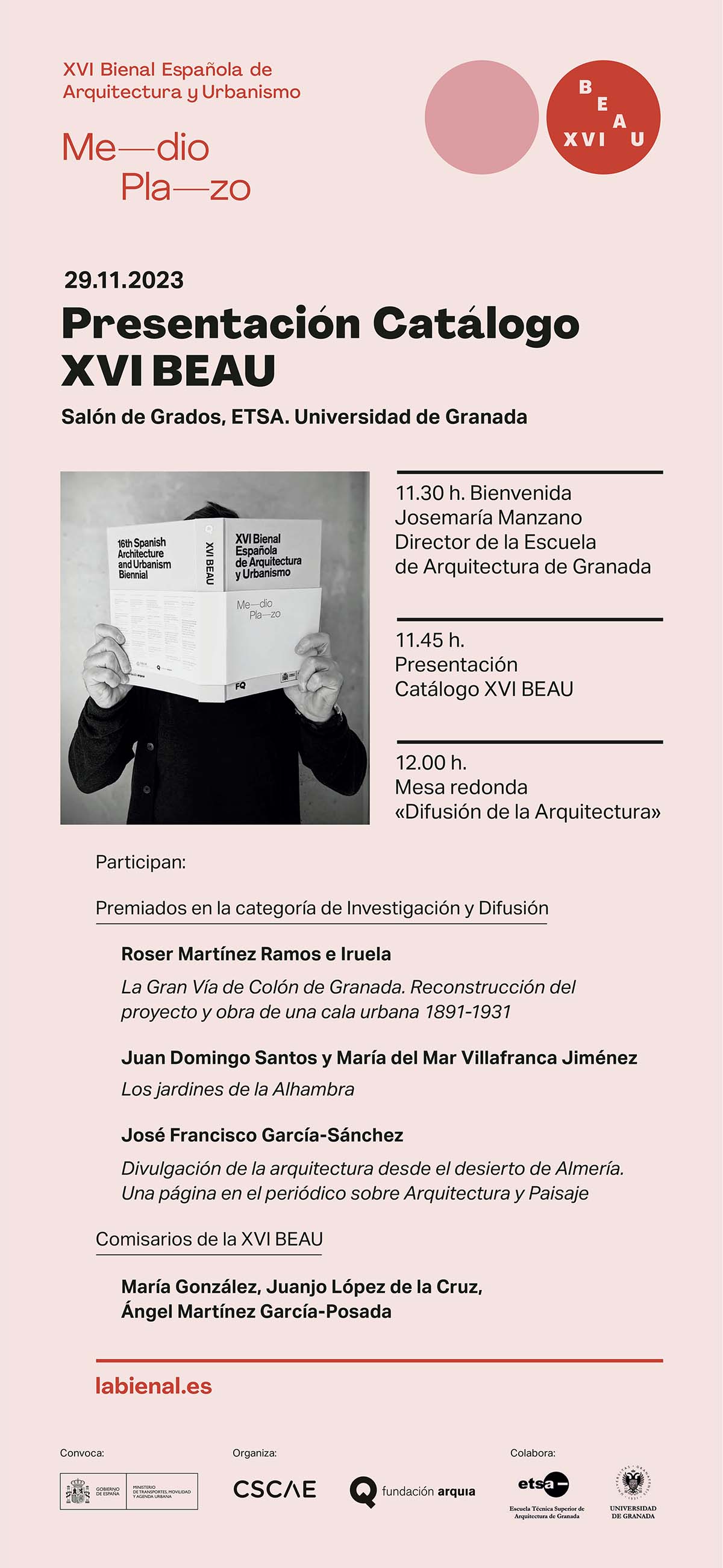 El próximo día 29 de noviembre a las 11.30 horas se presentará en la Sala de Grados de la ETS de Arquitectura de Granada el catálogo de esta edición de la Bienal.