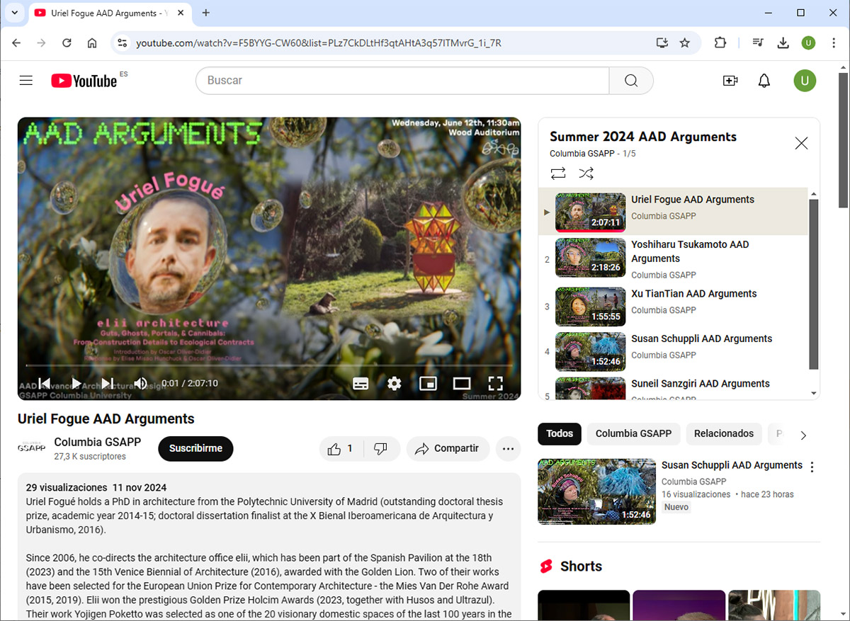 Ya está disponible la conferencia "Guts, Ghosts, Portals, and Cannibals: From Construction Details to Ecological Contracts" que impartimos el pasado 12 de junio impartimos, dentro del ciclo Arguments Summer 2004, que formó parte del AAD Advanced Architectural Design, GSAPP Columbia University.