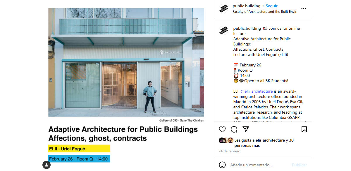 El miércoles 26 de febrero participamos en el curso "Adaptive Architecture for Public Buildings", con la conferencia "Affections, Ghost, Contracts", en la Faculty of Architecture and the Built Environment TU Delft.