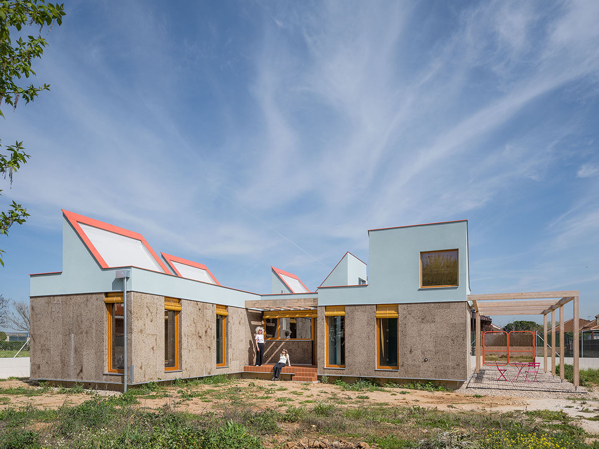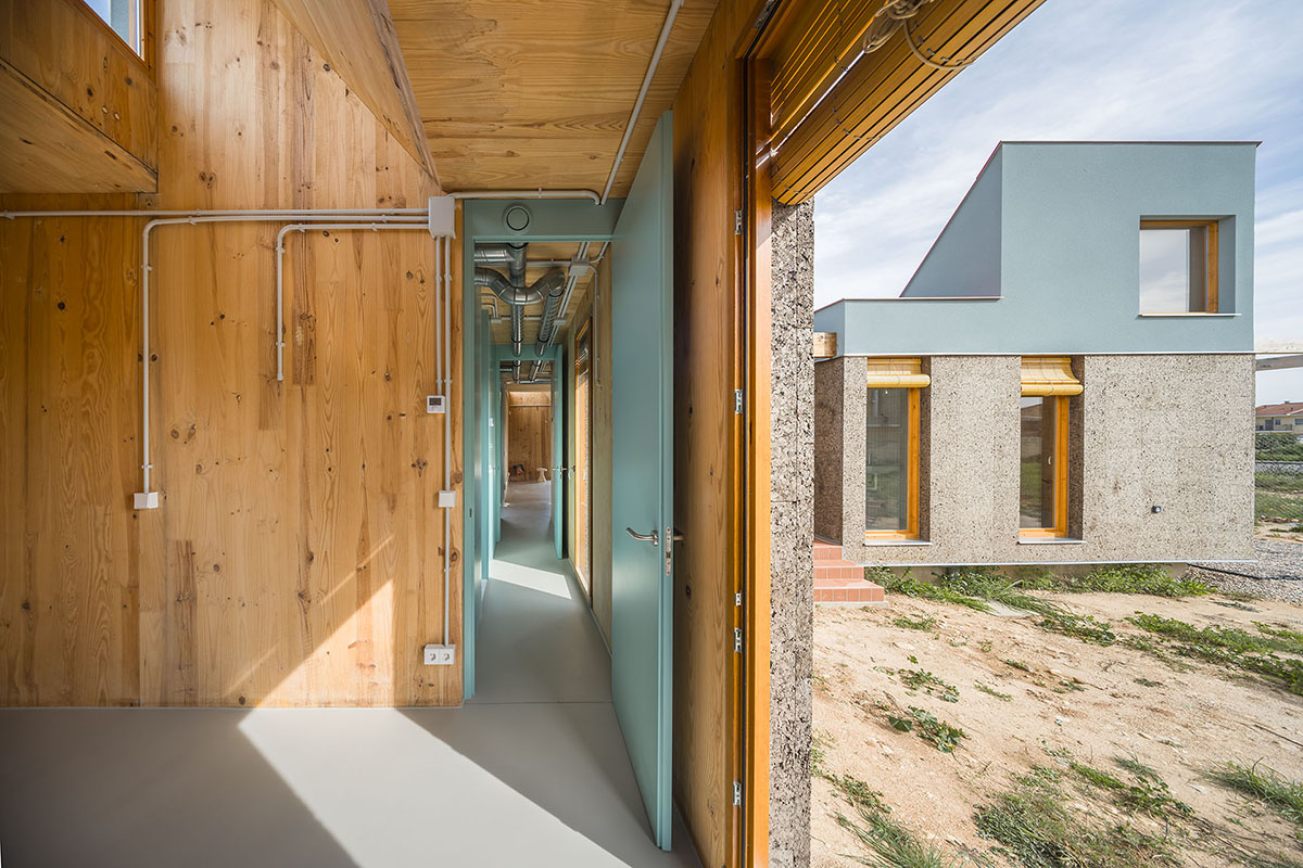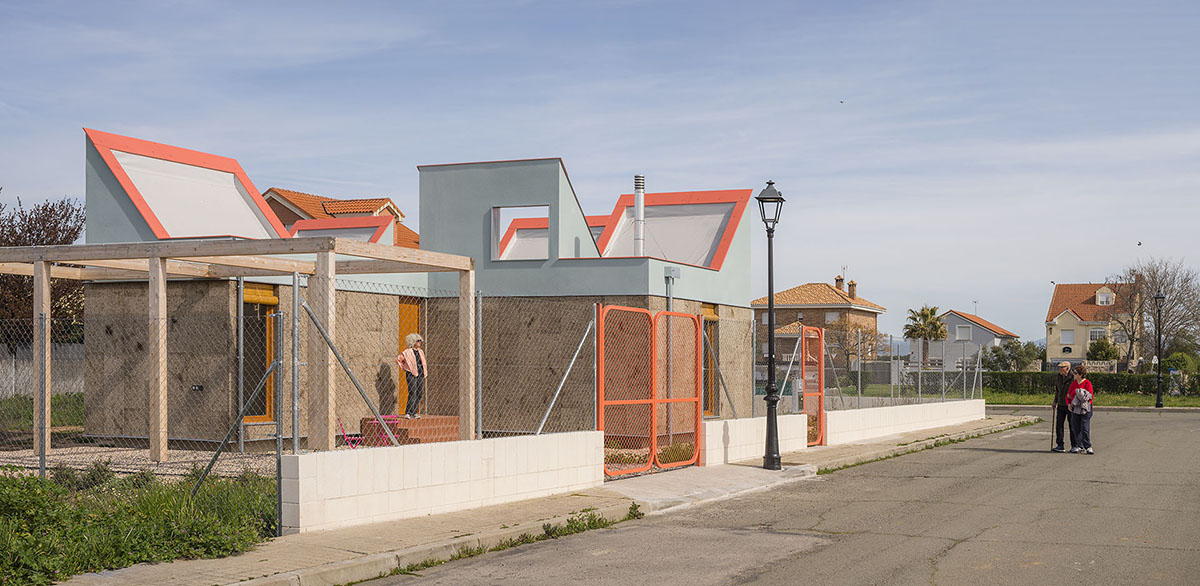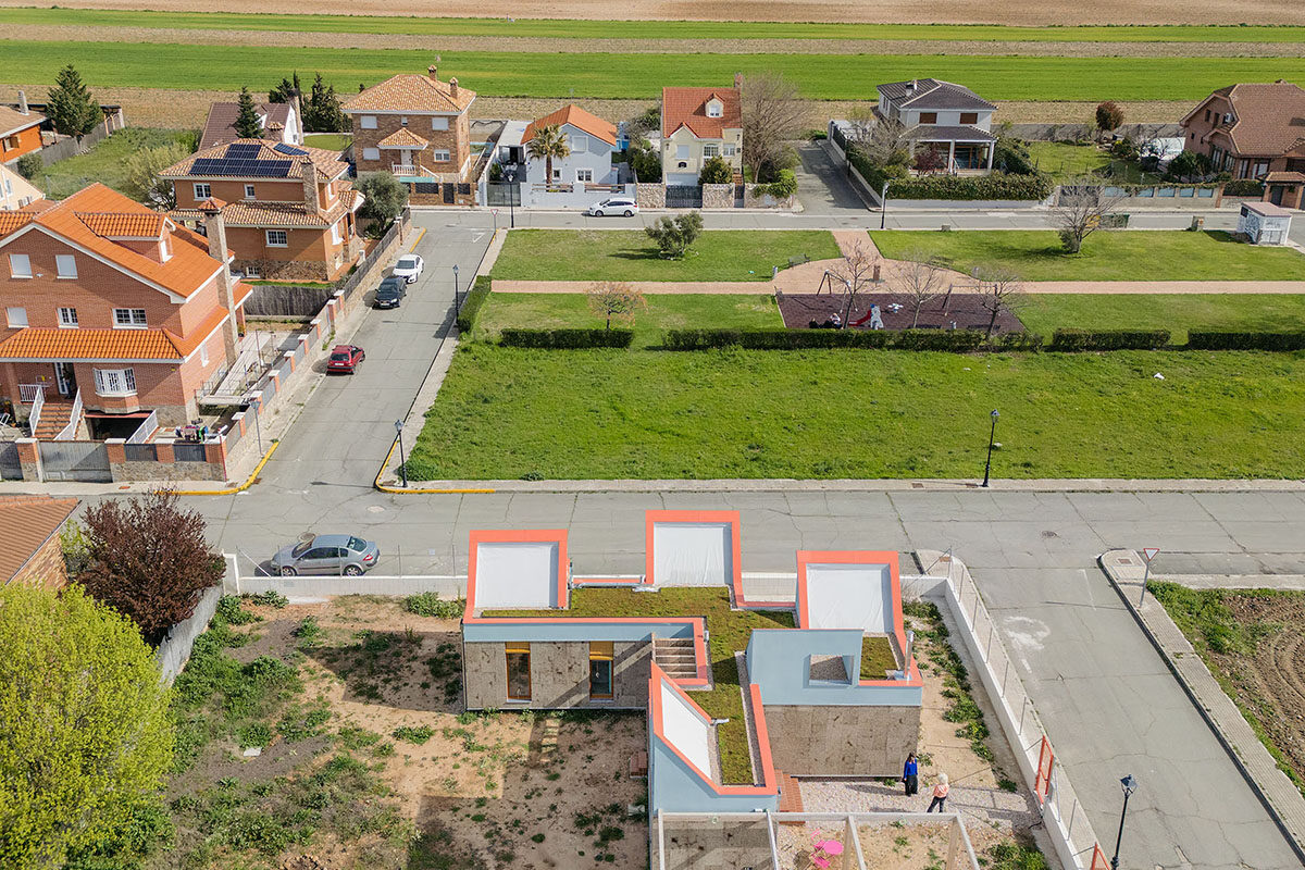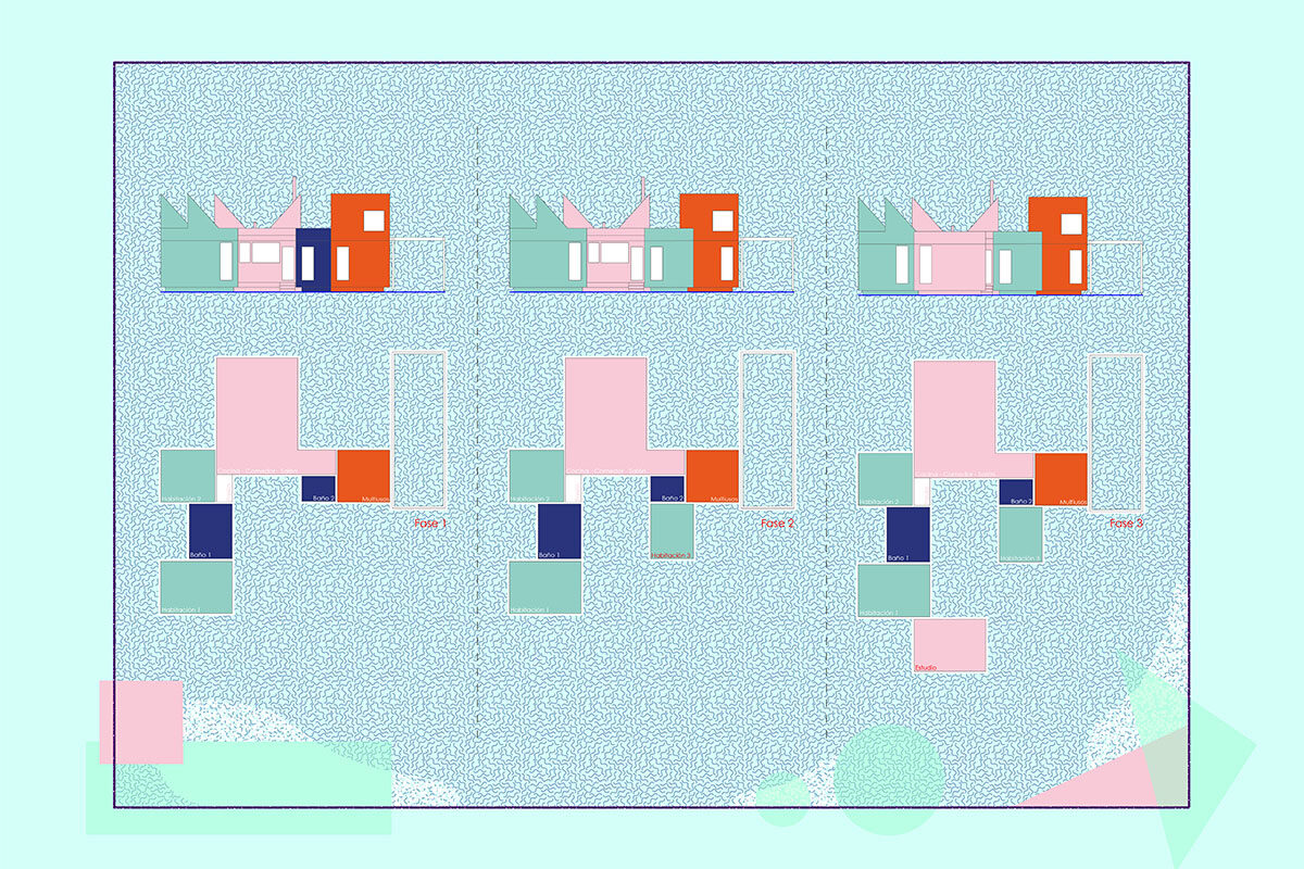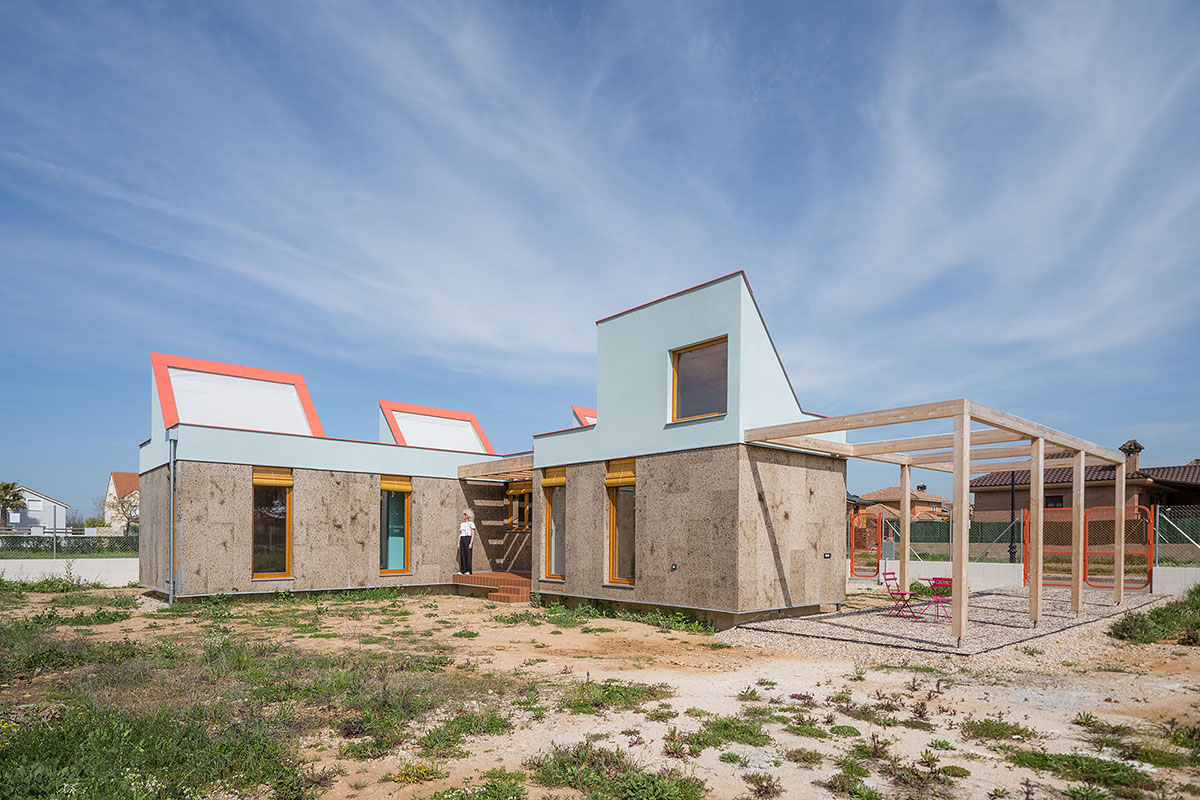 The general idea is for it to develop in phases. This first phase provides a basic architectural configuration that will gradually be adapted by its inhabitants. The second phase will entail completing the installation of solar panels, the chimney, and starting to plant greenery and small home vegetable gardens. The third phase is for enlarging the home with new models, thereby completing the central courtyard. The modular organization, the scale of the spaces, and the projected connections between modules can all be used to change the functional logic and act as a support for future enlargements and typological refits.