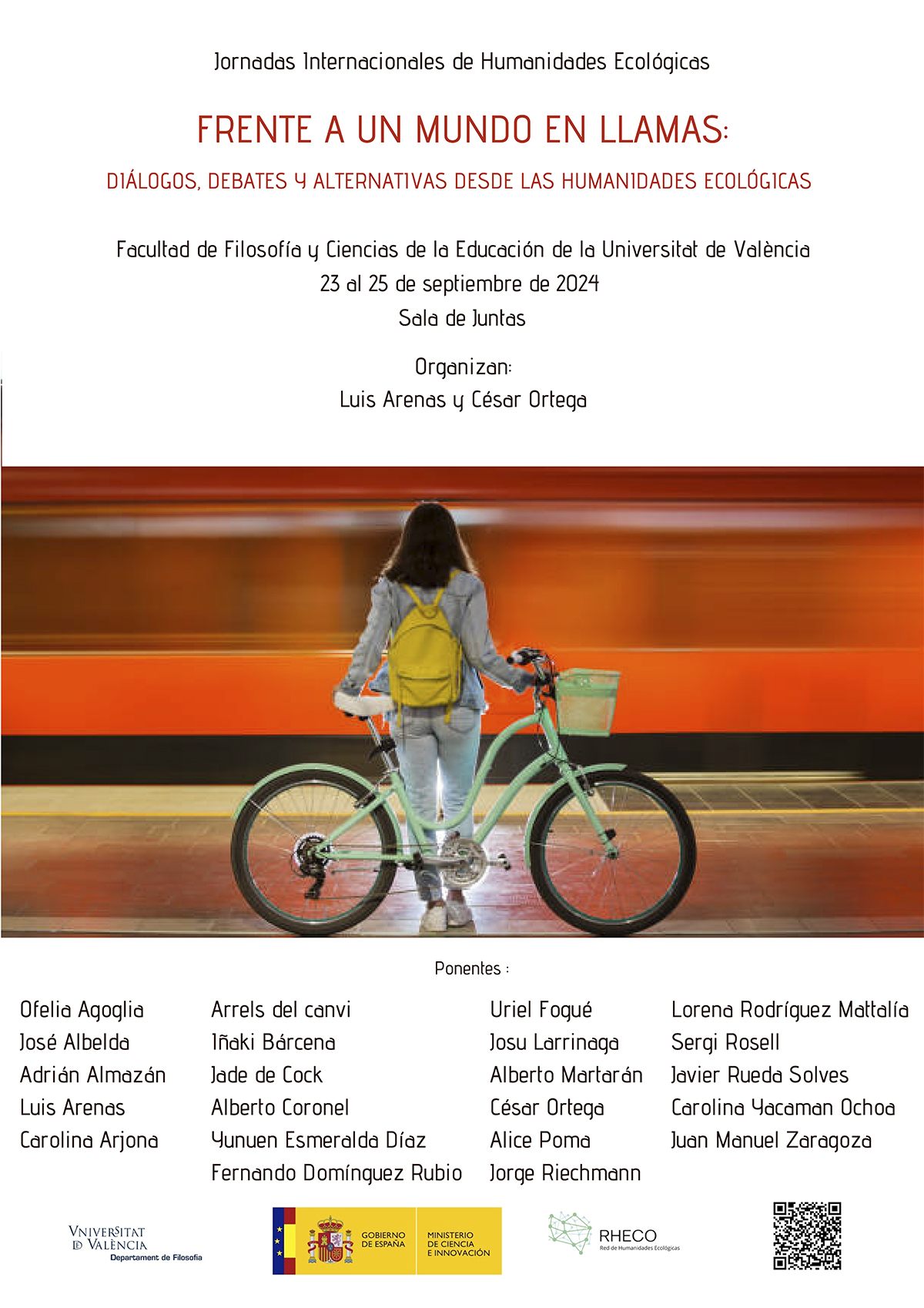 Next Monday 23 September we will participate in the International Conference of Ecological Humanities ‘Facing a world in flames. Dialogues, debates and alternatives from the Ecological Humanities’. Our conference is entitled: ‘Ecological Portals’ and will take place on Monday afternoon. Organised by: Luis Arenas and César Ortega. See you at the Faculty of Philosophy and Educational Sciences, University of Valencia. The conference will take place from 23 to 25 September 2024.