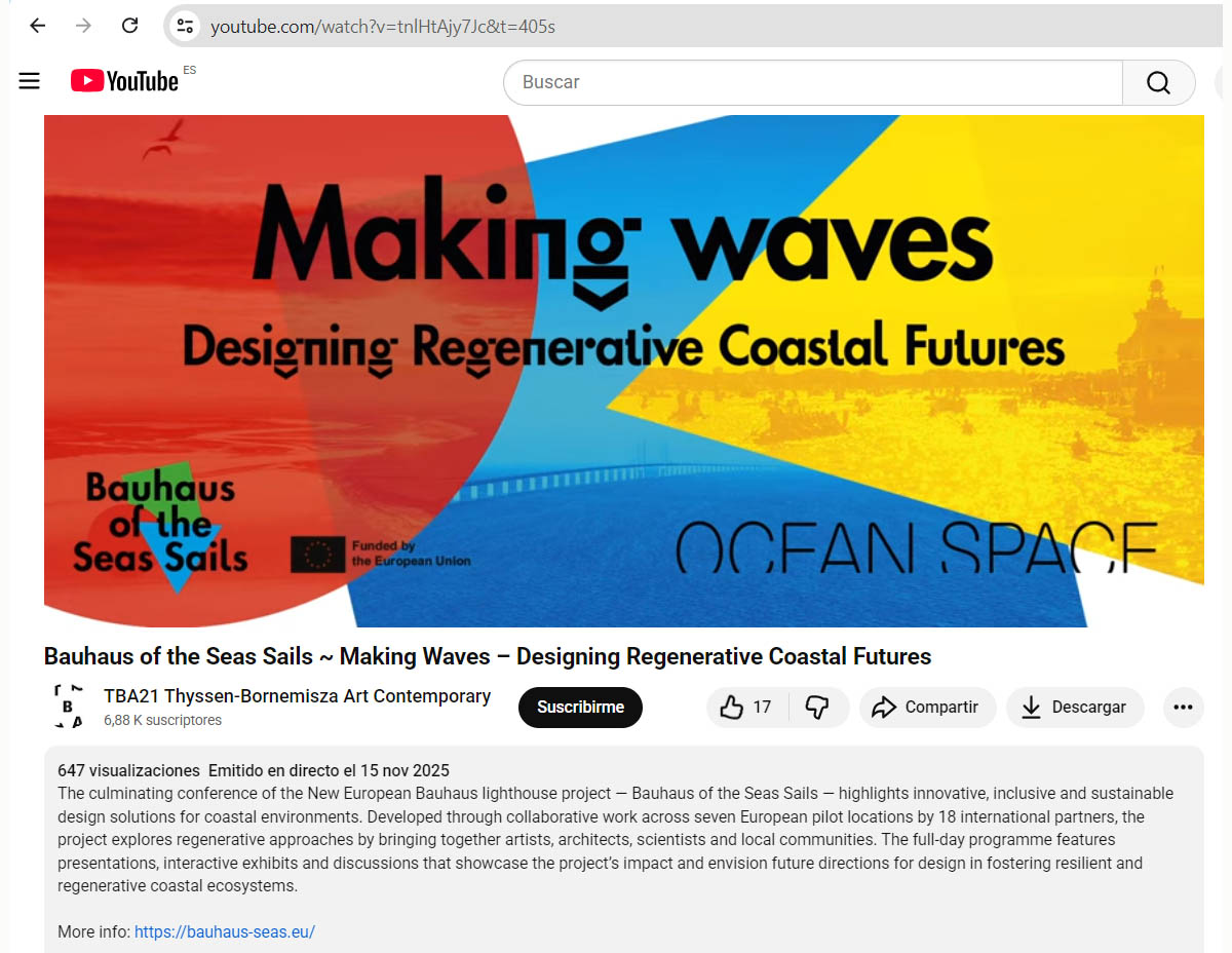 En el siguiente enlace se puede acceder al registro del evento de cierre del proyecto Bauhaus of the Seas Sails, que tuvo lugar el 15 de noviembre de 2025 en el Ocean Space de Venecia.