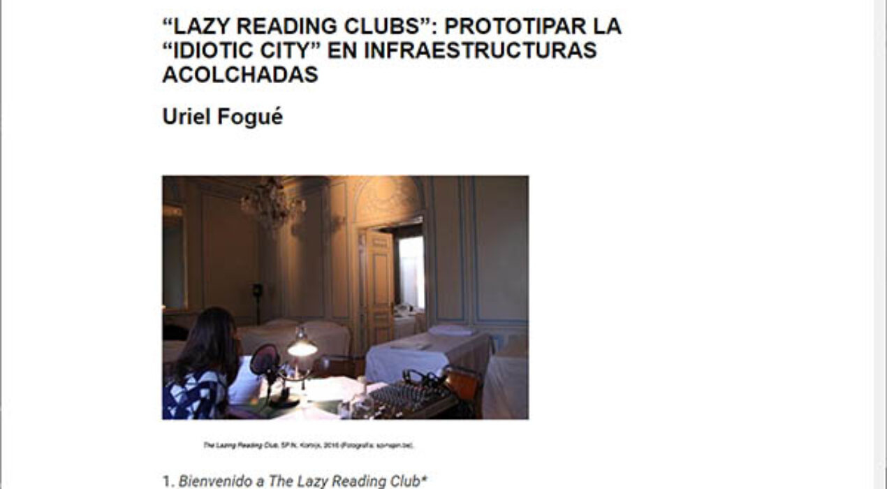 Artículo de Uriel Fogué sobre su experiencia en el Lazy Reading Club, publicado en Materiales Concretos, editado por Peio Aguirre y Andrés Carretero. + info: https://www.materialesconcretos.org/post/190677336567/lazy-reading-clubs-prototipar-la-idiotic-city?fbclid=IwAR2GECbb96FJAVtcBl-FjMZWJ2b4S-huKas8CQiexFwGHMM4qxGvSl0Wud0 + + + Article by Uriel Fogué about his experience at the Lazy Reading Club, published in Materiales Concretos, edited by Peio Aguirre and Andrés Carretero. + info: https://www.materialesconcretos.org/post/190677336567/lazy-reading-clubs-prototipar-la-idiotic-city?fbclid=IwAR2GECbb96FJAVtcBl-FjMZWJ2b4S-huKas8CQiexFwGHMM4qxGvSl0Wud0