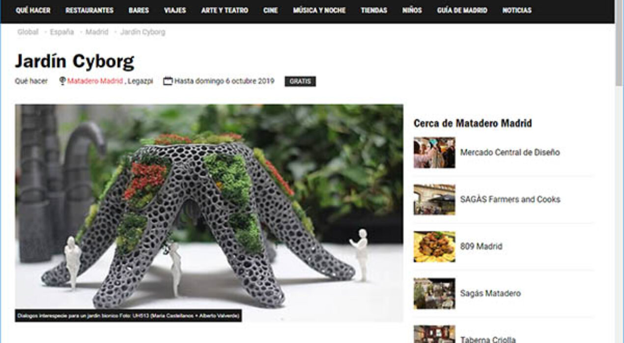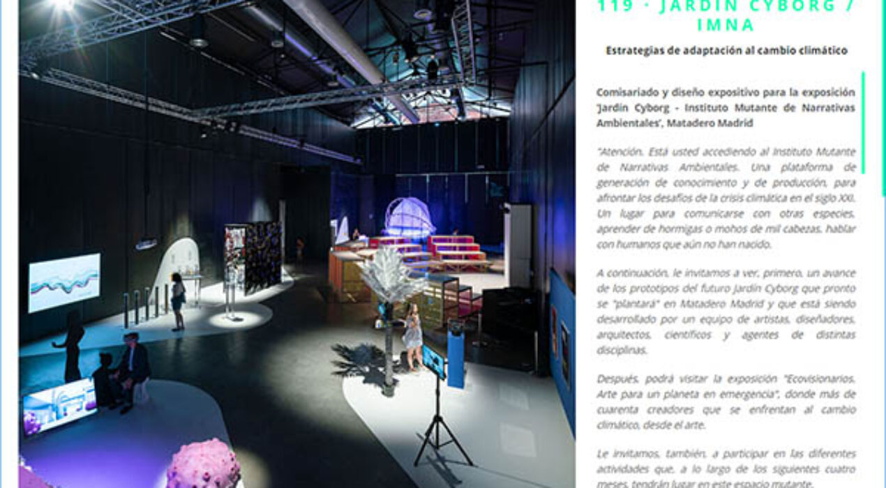 El Jardín Cyborg - Instituto Mutante de Narrativas Ambientales’ en Metalocus. + + + The Cyborg Garden in Metalocus + info: https://www.metalocus.es/es/noticias/jardin-cyborg-en-matadero-madrid-por-elii?fbclid=IwAR05NMqw-ZQOtTkwHEClc2ojvYmGX7KaKdwF2jrPjAheyZsdaEwbDPhPHNo