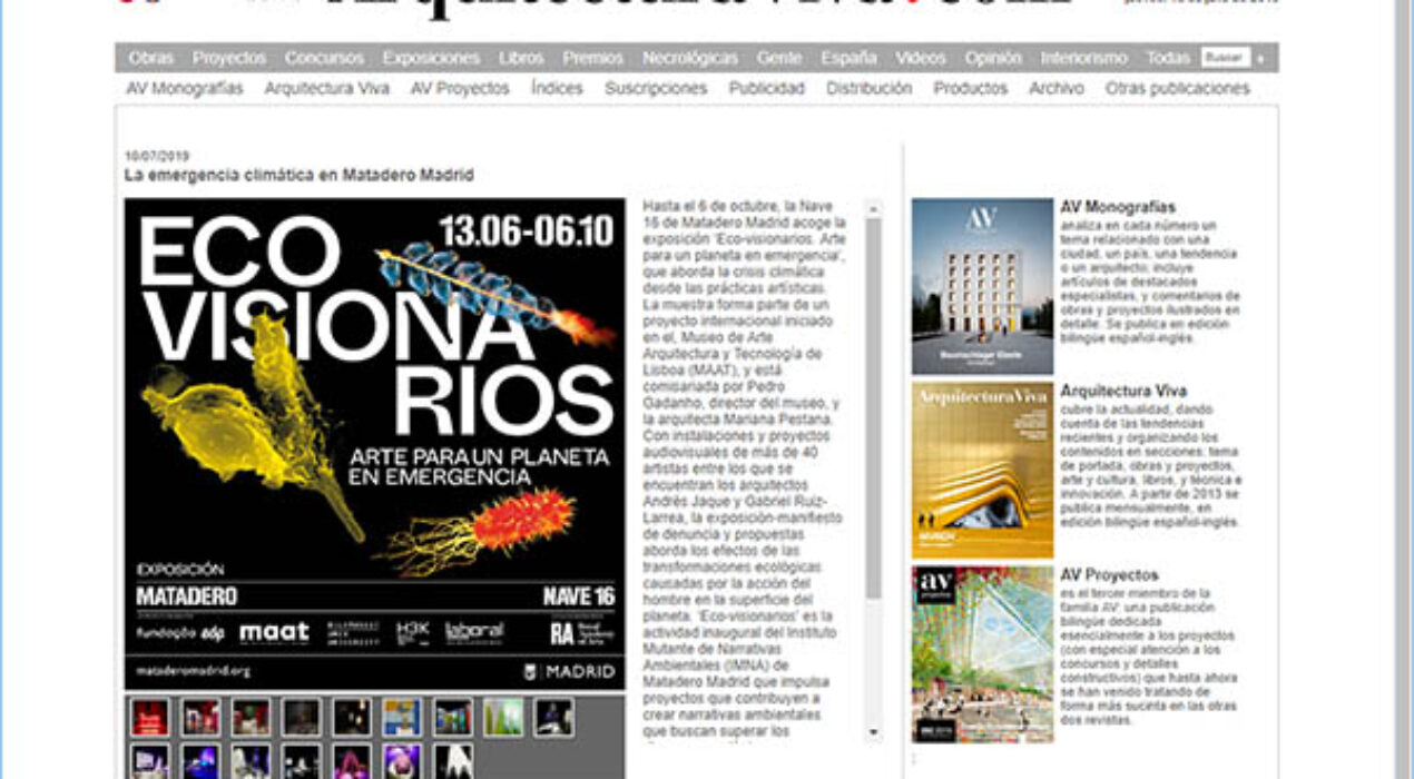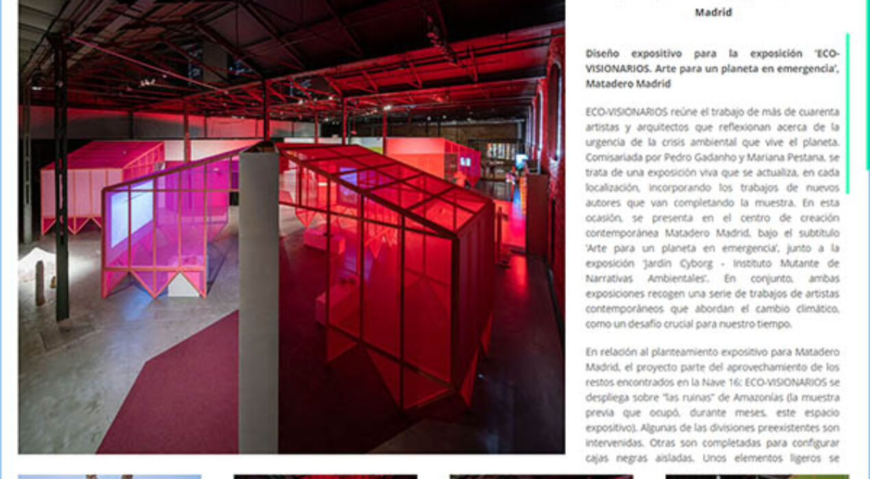¡Nuevo proyecto en la web! 118 · Ecovisionarios. Diseño expositivo para la exposición ‘ECO-VISIONARIOS. Arte para un planeta en emergencia’, Matadero Madrid. Comisarios: Pedro Gadanho + Mariana Pestana Comisaria Matadero Madrid: Ana Ara Fotografía: Imagen Subliminal (Miguel De Guzman + Rocio Romero) Abierto hasta el 6 de octubre, en la Nave 16. + info: http://elii.es/portfolio/ecovisionarios-esp/ + + + New project in our website! 118 – Ecovisionaries. Exhibition design for the 'ECO-VISIONARIES: Art for a planet in emergency' exhibition at the Matadero Madrid Curators: Pedro Gadanho + Mariana Pestana Curator Matadero Madrid: Slaughterhouse Madrid: Ana Ara Photography: Imagen Subliminal (Miguel De Guzman + Rocio Romero) + info: http://elii.es/en/portfolio/ecovisionarios-english/
