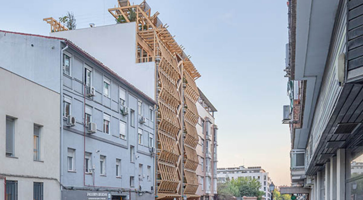 109 · casa diversa Saberes diversos Prototipo espacial, estudio de viabilidad para la nueva sede de la FDNC, Madrid MEMORIA*Este es uno de los tres prototipos espaciales que forman parte del estudio de viabilidad, desarrollado mediante un proceso interdisciplinar, para la implantación de la nueva sede para la Fundación Daniel y Nina Carasso (FDNC) en Madrid. Tras las copas de los árboles, asoma un plano vegetal del que se recorta un grupo de espacios suspendidos en equilibrio flotante. En su base, varios huecos de distinto tamaño activan la relación con la calle. Una pérgola de elementos textiles y paneles fotovoltaicos envuelve la terraza y completa el volumen en la parte superior. La estrategia de rehabilitación de esta edificación de los años sesenta del siglo XX parte de la consolidación de la estructura preexistente de hormigón armado y la apertura de huecos singulares de diferentes geometrías, tamaños, materialidades y colores. Dicha matriz de “patios elevados” resuelve la ventilación y la entrada de luz natural en el interior de este bloque de casi quince metros de crujía clausurado en su medianera posterior y lateral sur. Asomándose a la zona verde contigua, las “habitaciones exteriores” funcionan como áreas polivalentes y de esparcimiento. También […]