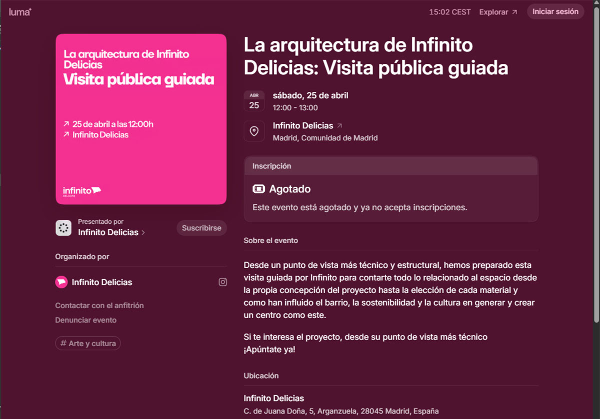 "Desde un punto de vista más técnico y estructural, hemos preparado esta visita guiada por Infinito para contarte todo lo relacionado al espacio desde la propia concepción del proyecto hasta la elección de cada material y como han influido el barrio, la sostenibilidad y la cultura en generar y crear un centro como este".